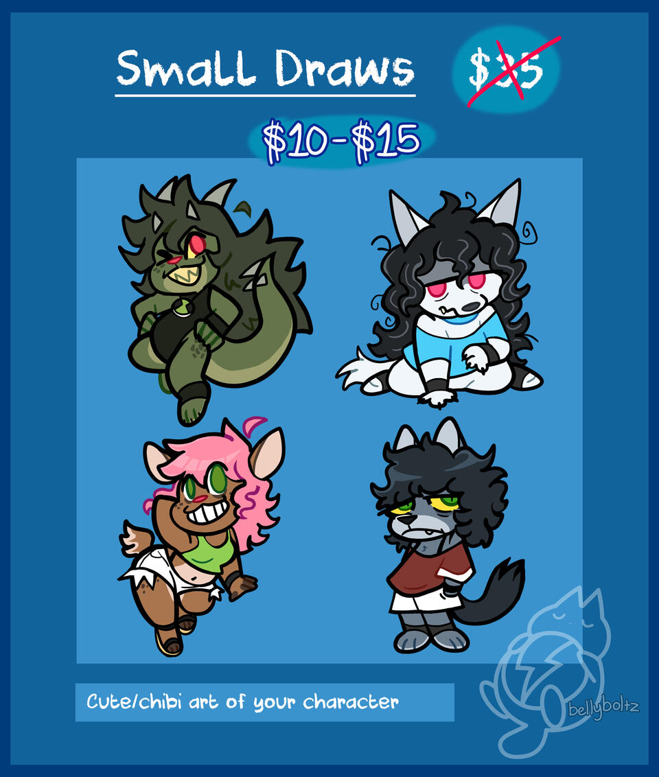 regarding the tiny draws: This is like a skeb/ surprise me type of deal since it is just a simple YCH (your character here), there will be no sketch provided. Once the product is provided edits are allowed